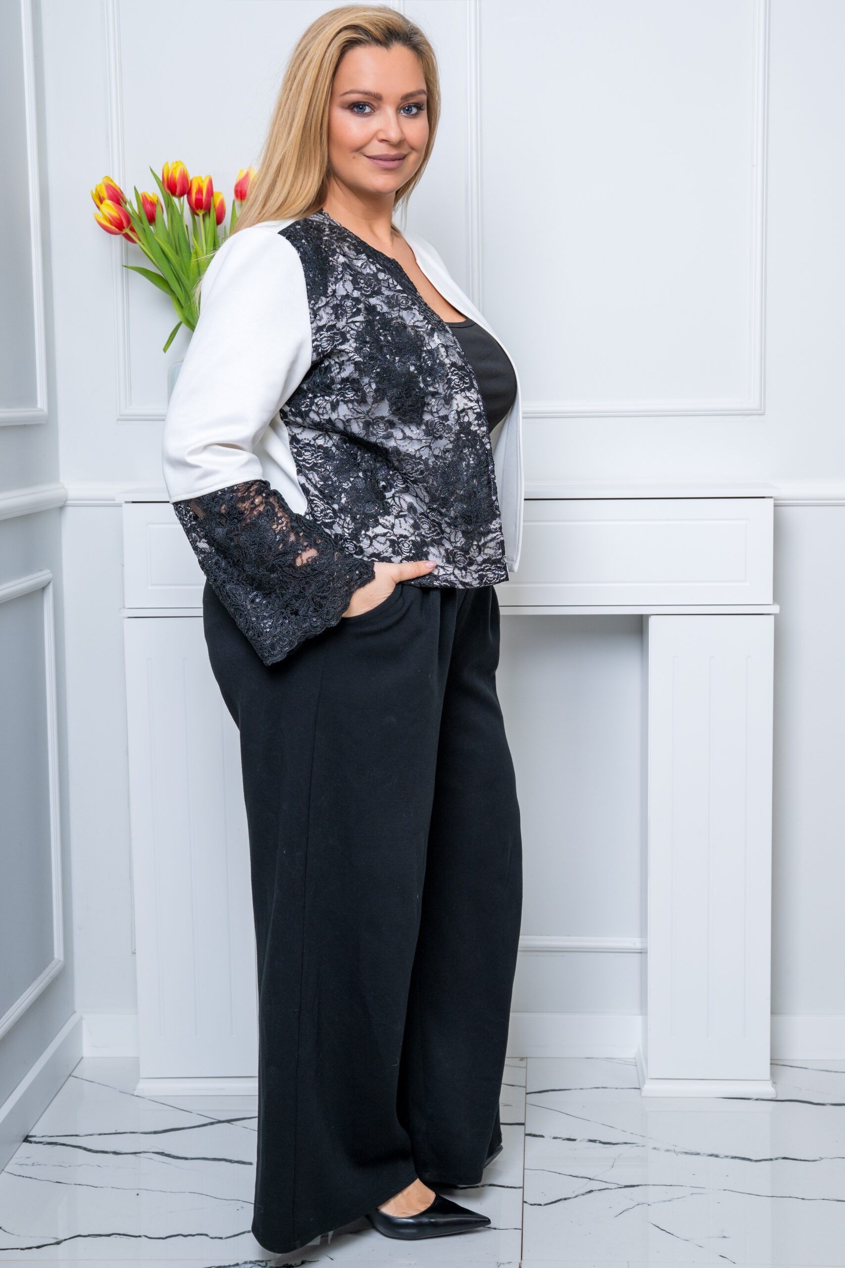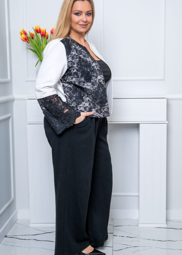 Żakiet ARIA to świetna propozycja na sezon wiosenny, chłodniejsze wieczory lub do pracy. Żakiet jest elegancki, bardzo wygodny i nie wymaga prasowania :). Miękki materiał eko zamsz, modne wzornictwo i staranne wykonanie a do tego ozdobna koronka! Model będzie pasować do eleganckiego oraz codziennego ubioru. Długość nad linię bioder podkreśla kobiecą talię oraz dodaje świeżości i lekkości całej stylizacji.