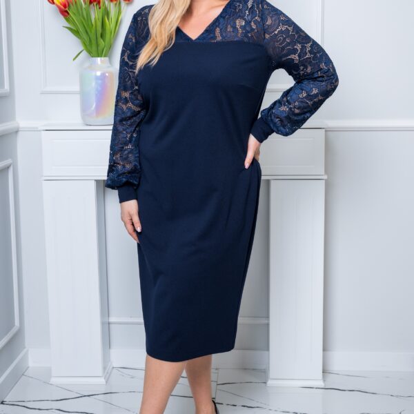 Czarna, elegancka sukienka EMMA to pomysłowe połączenie klasycznego kroju z koronkowymi rękawami. Została stworzona z myślą o kobiecej sylwetce plus size, a dekolt w kształcie litery V pięknie wysmukla szyję i pozwala pokazać ulubioną biżuterię. Wykończenie sprawa, że ta elegancka czarna sukienka nie jest przeciętna, a Ty będziesz wyglądała szykownie. Sukienka nie ma kieszeni ani podszewki, a jej krój jest lekko dopasowany, dzięki czemu podkreślisz swoje atuty!