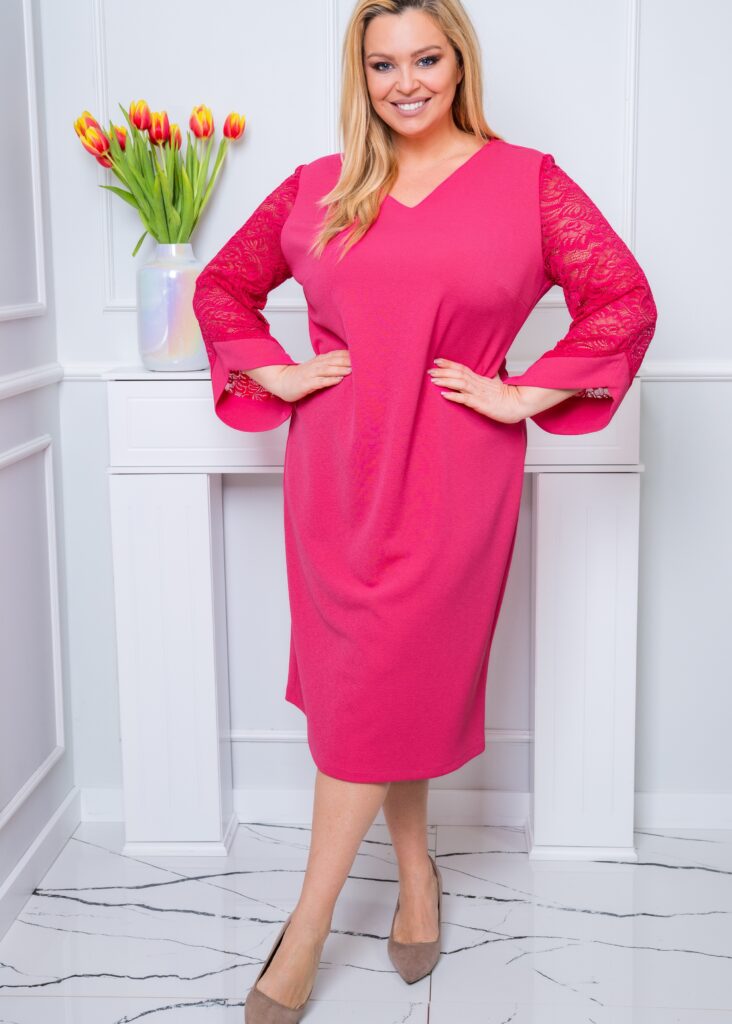 Malinowa sukienka z koronką MORTICIA #11